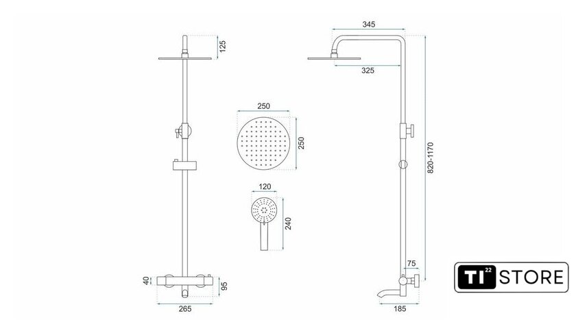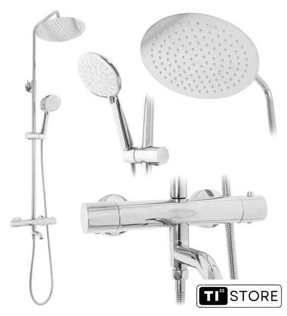| Комплектация | верхний душ, штанга, ручной душ (лейка), держатель лейки, шланг, смеситель, излив для ванны |
