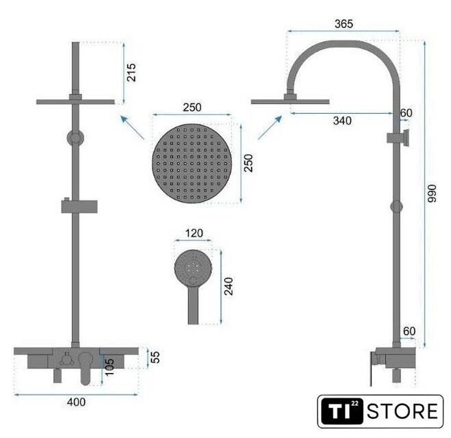 | Диаметр (ширина) верхнего душа | 250 мм |
