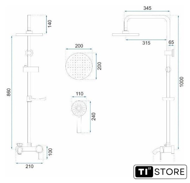 | Диаметр (ширина) верхнего душа | 200 мм |