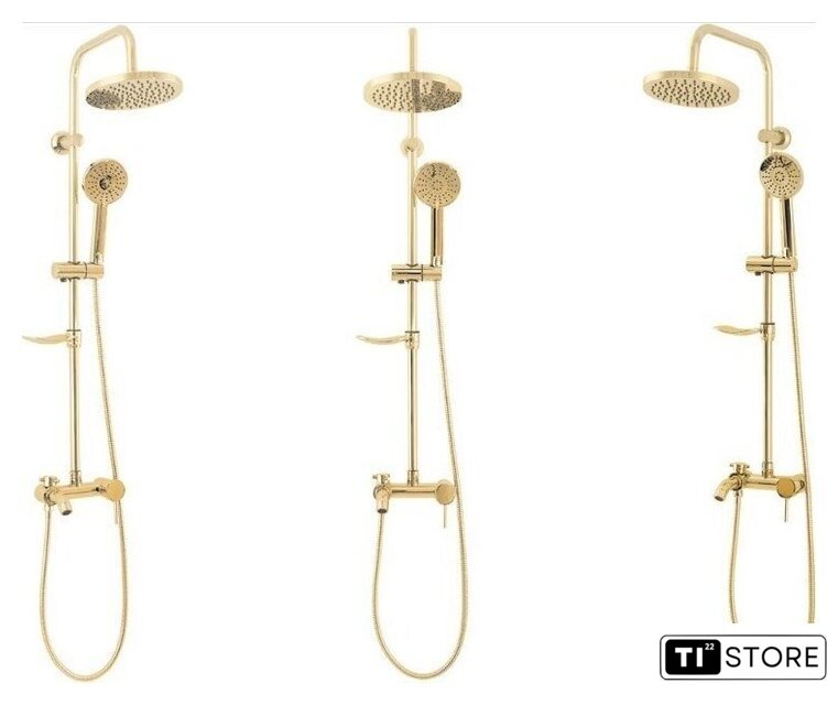 | Комплектация | верхний душ, штанга, ручной душ (лейка), держатель лейки, шланг, смеситель, излив для ванны, мыльница или держатель для мыла |