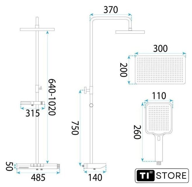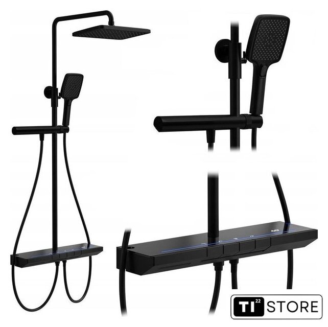 | Комплектация | верхний душ, штанга, ручной душ (лейка), держатель лейки, шланг, смеситель, излив для ванны, освещение (подсветка) |