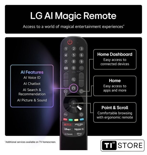 | Оригинальные функции | AI Voice ID, AI Chatbot, AI Concierge, Multi View, Home Hub, WOW Orchestra, AI Sound Pro, поддержка Matter, hands-free голосовое управление |