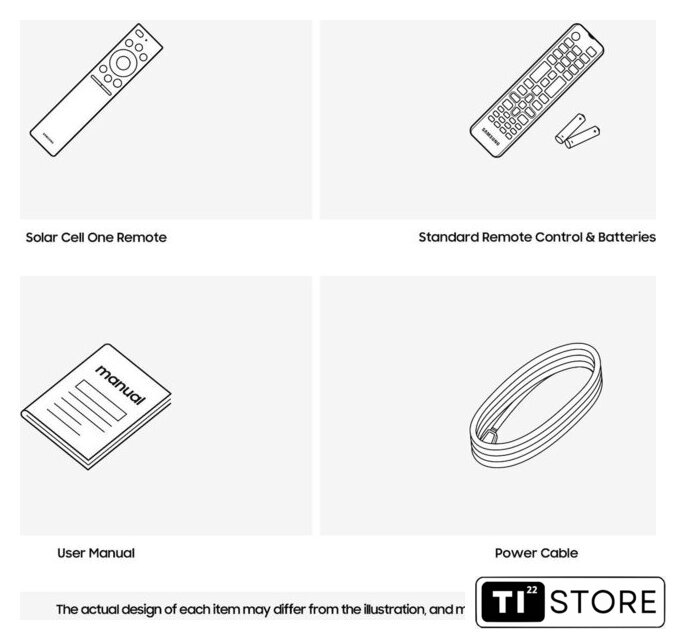 | Пульт в комплекте | Samsung TM2360E – с голосовым управлением, на солнечных батарее, кнопками Netflix, Prime Video, Disney |