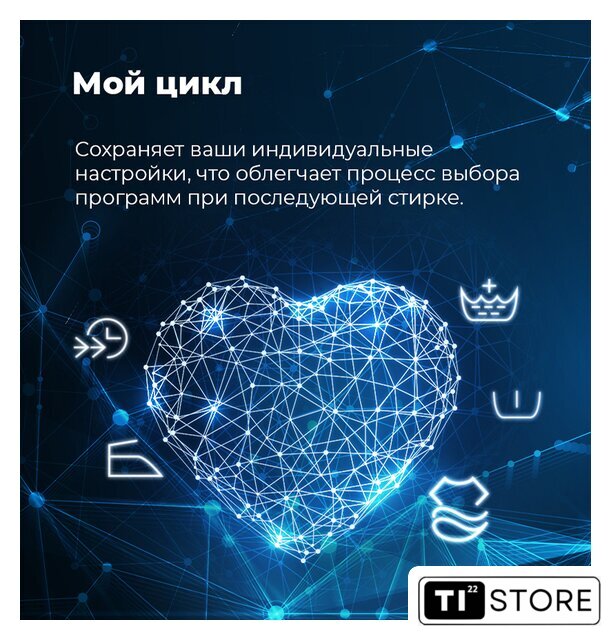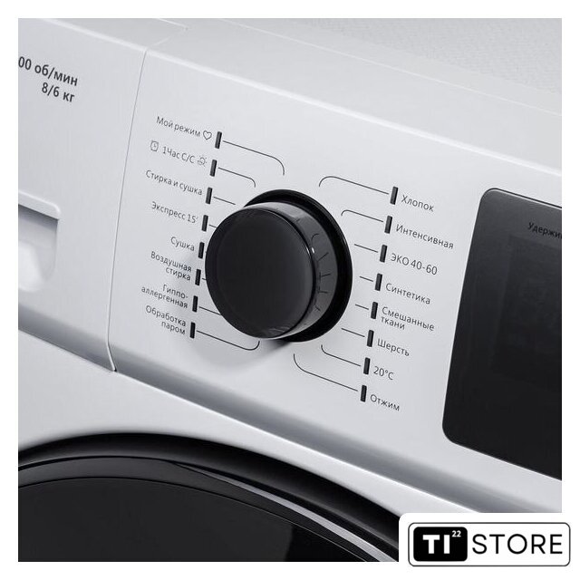 | Все программы | ХлопокИнтенсивнаяЭКО 40-60СинтетикаСмешанные тканиШерсть20°ОтжимОбработка паромГипоаллергеннаяВоздушная стиркаСушкаЭкспресс 15'Стирка и сушка1 час С/СМой режим |