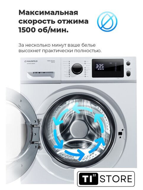 | Максимальная скорость отжима | 1500 об/мин |