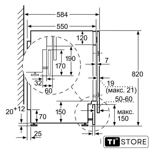 | Годовой расход воды (стирка+сушка) | 21000 л |