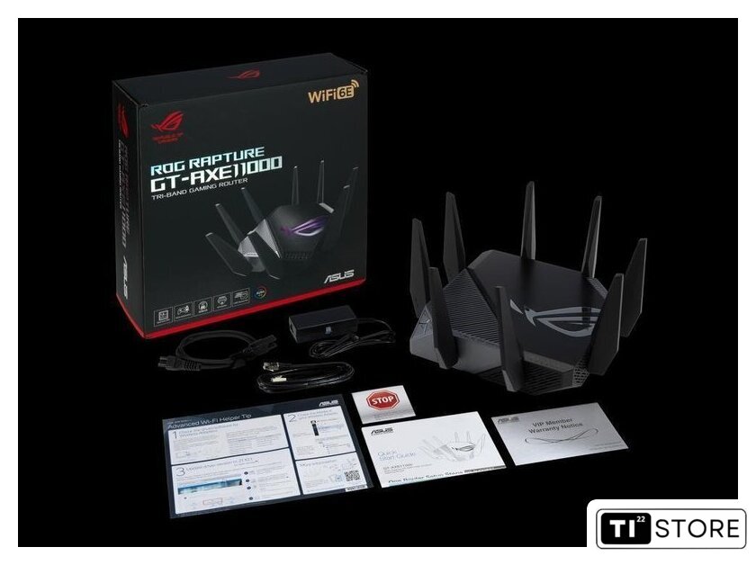 | Комплектация | - ASUS ROG Rapture GT-AXE11000- Блок питания- кабель LAN длиной 1,5 м- Руководство по установке |